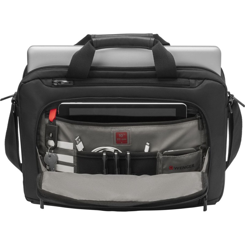 Τα προϊόντα που δεν αναγράφουν διαθέσιμο σημαίνει ότι δεν υπάρχουν άμεσα διαθέσιμα στο κατάστημα και θα παραληφθούν το αργότερο εντός των εργάσιμων ημερών που αναγράφεται στη διαθεσιμότητα. Σε κάθε περίπτωση η ημερομηνία μπορεί να μεταβληθεί και θα υπάρχει σχετική ενημέρωσή σας.Η τσάντα ώμου της Wenger είναι υφασμάτινη και χωράει laptop έως και 16 ιντσών.