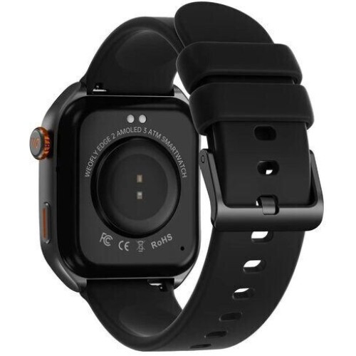 Το Weofly Edge 2 Smartwatch διαθέτει κυρτή AMOLED οθόνη 1,85" με λειτουργία Always-on, αντοχή στο νερό 3ATM (έως 30 μ.), μεταλλικό σώμα από κράμα αλουμινίου και γυαλί Asahi τριπλής σκληρότητας. Ενσωματώνει μπαταρία 400 mAh με διάρκεια 7–10 ημέρες (35 ημέρες αναμονή) και φόρτιση σε 2,5 ώρες. Υποστηρίζει πάνω από 100 αθλητικές λειτουργίες και συγχρονισμό δεδομένων προπόνησης με το Strava μέσω της εφαρμογής Weofly Fitpro. Διαθέτει σύνδεση Bluetooth 5.3, δύο κουμπιά, διπλό λουράκι (σιλικόνη και υφασμάτινο νάιλον), και είναι συμβατό με iOS 9.0+ και Android 5.0+.