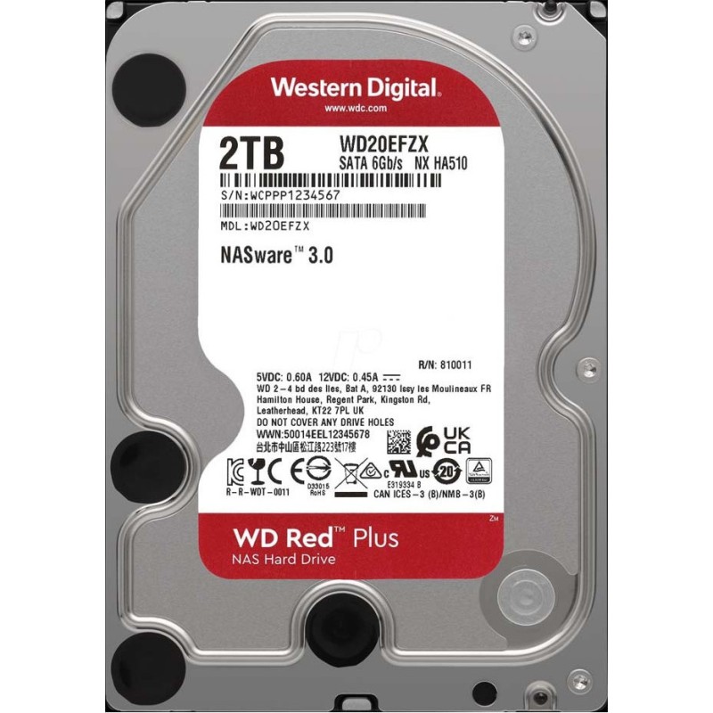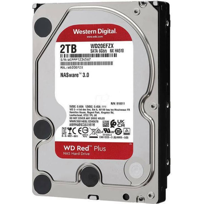 Western Digital Red Plus 2TB HDD 3.5" SATA III 5400rpm με 64MB Cache για NAS (WD20EFPX)