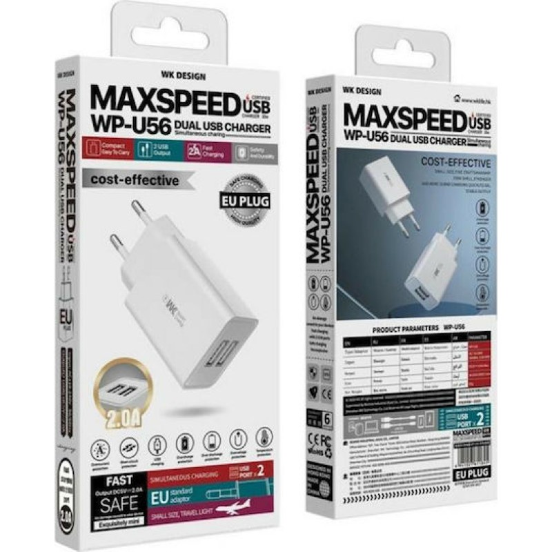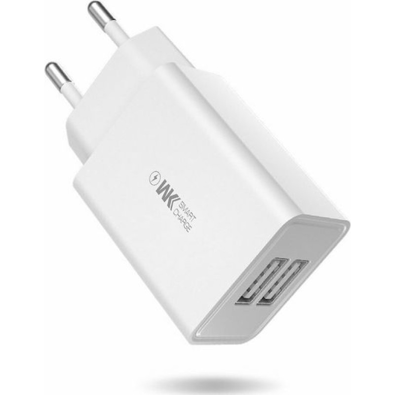 WK Φορτιστής με 2 Θύρες USB-A και Καλώδιο Lightning Λευκός (WP-U56) (WP-U56 COMBO)