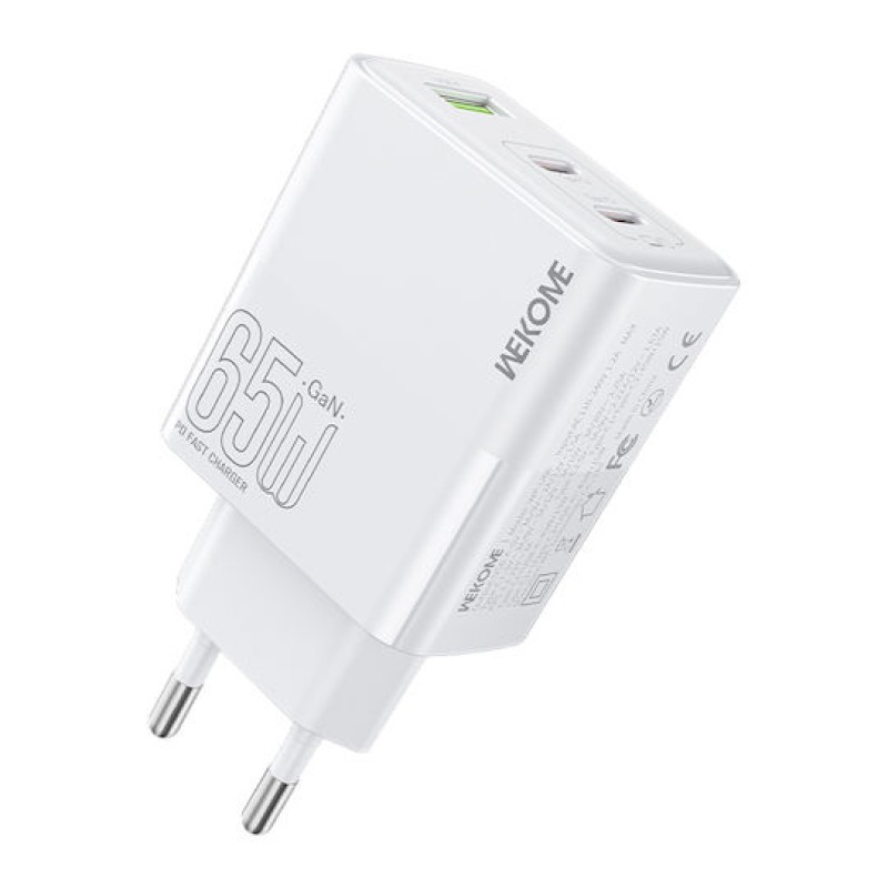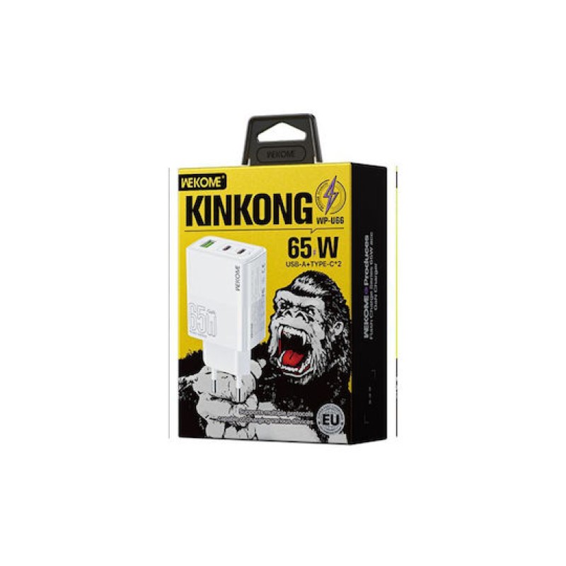 WK Φορτιστής Χωρίς Καλώδιο GaN με Θύρα USB-A και 2 Θύρες USB-C 65W Power Delivery Λευκός (WP-U66) (WP-U66)