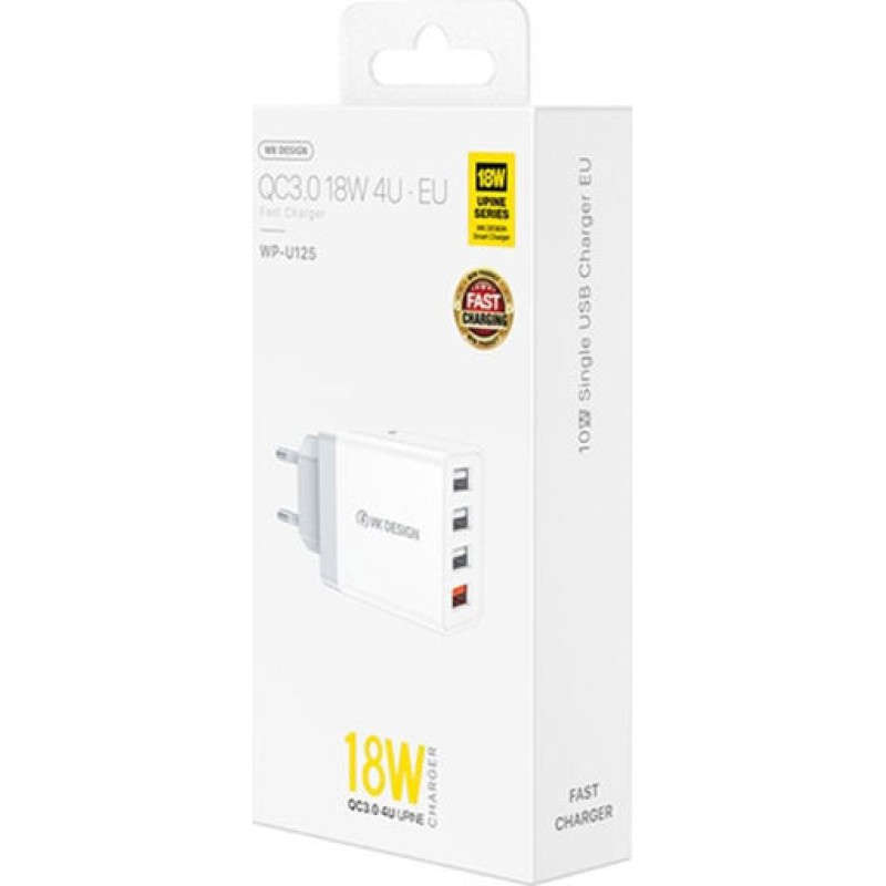 WK Φορτιστής Χωρίς Καλώδιο με 4 Θύρες USB-A 18W Quick Charge 3.0 Λευκός (WP-U125 Youpin) (WP-U125)