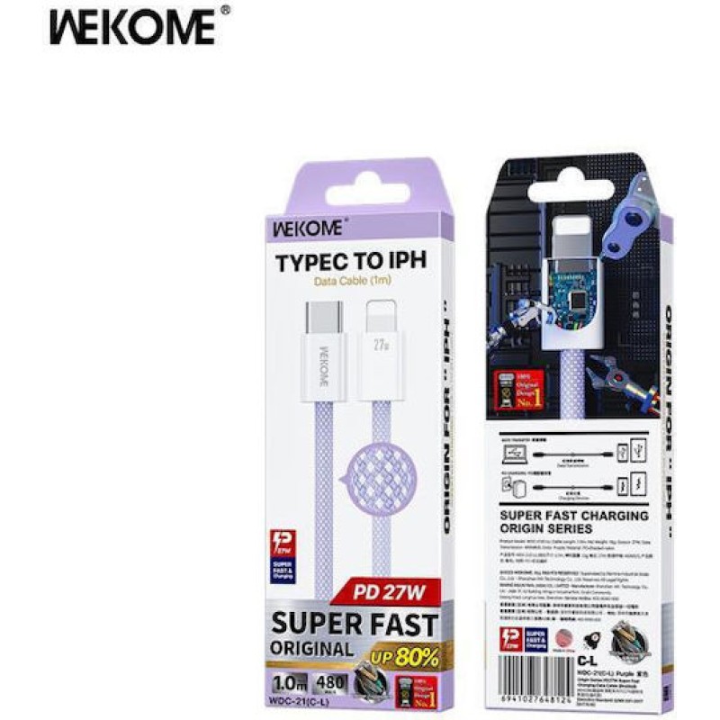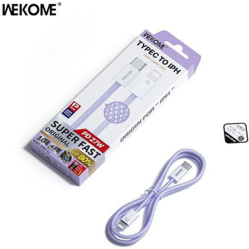 WK WDC-21 Braided USB-C to Lightning Cable 27W Μωβ 1m (WDC-21 PURPLE)