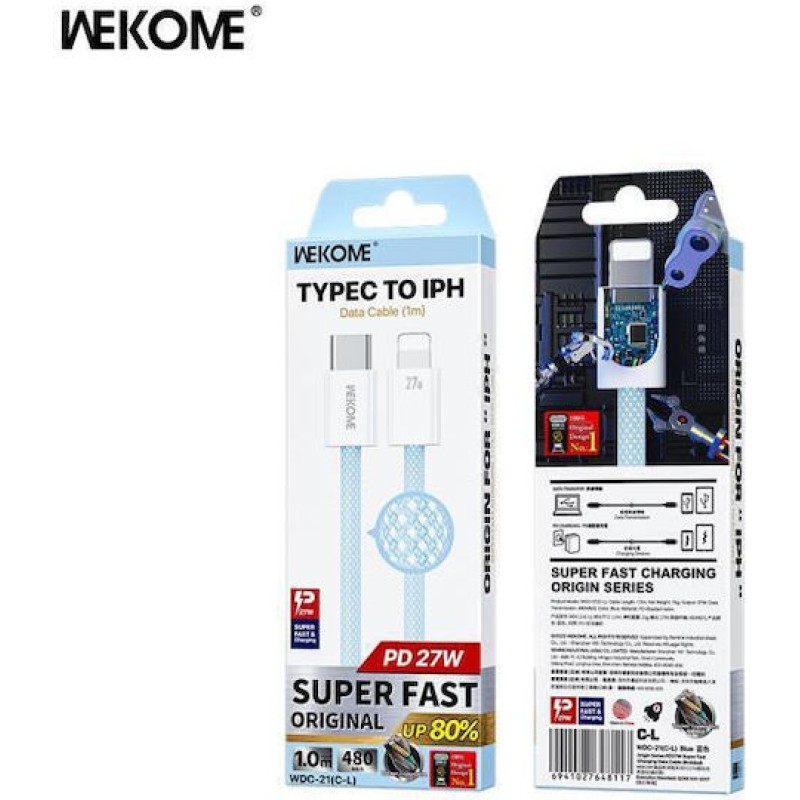 WK WDC-21 Braided USB-C to Lightning Cable 27W Μπλε 1m (WDC-21 BLUE)
