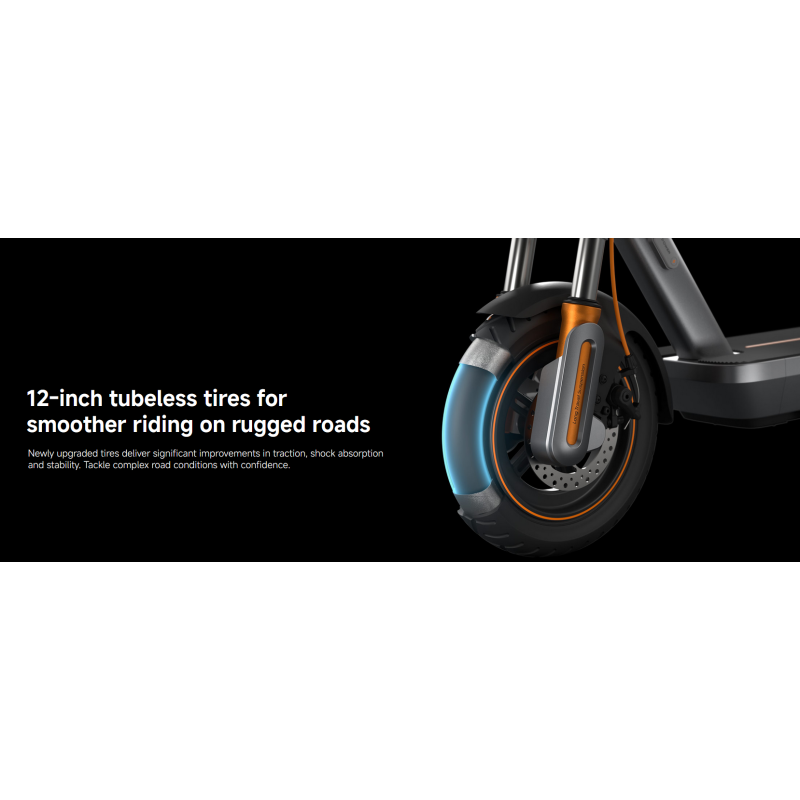 Τροχοί: 12″ tubeless λάστιχα για σταθερότητα και άνεση
