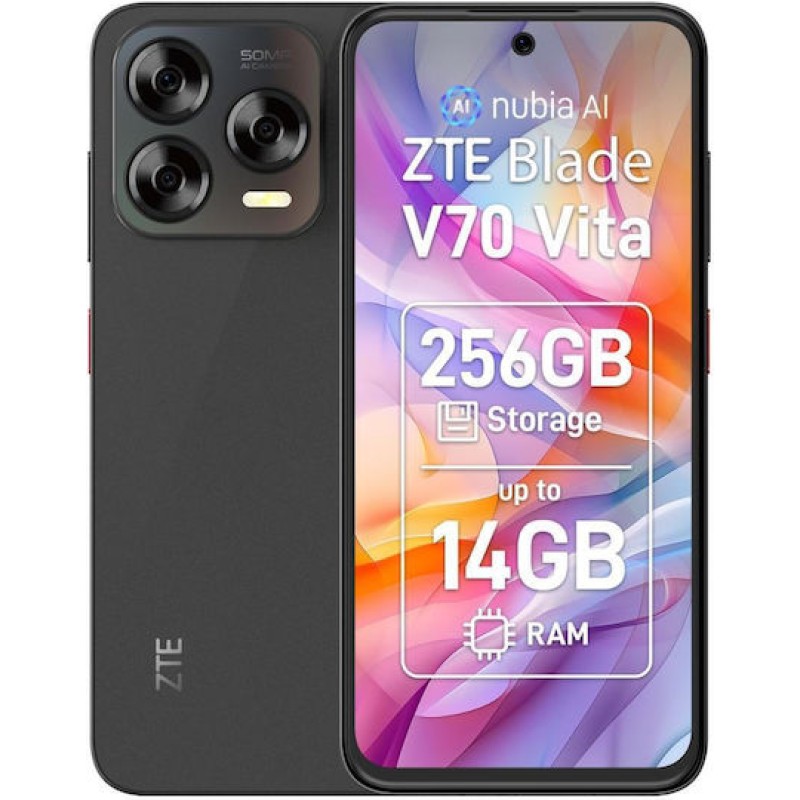 ZTE Blade V70 Vita Dual SIM (4GB/256GB) Stone Gray είναι ένα προσιτό και αξιόλογο Android smartphone με μεγάλη οθόνη 6,7″ και λεία εικόνα 120 Hz για άνετη προβολή περιεχομένου. Διαθέτει ισχυρή κύρια κάμερα 50 MP, μπροστινή 16 MP για selfies, μεγάλη μπαταρία 5000 mAh με γρήγορη φόρτιση, και 256 GB αποθηκευτικού χώρου που μπορεί να επεκταθεί μέσω microSD — ιδανικό για καθημερινή χρήση, φωτογραφίες, βίντεο και εφαρμογές. Το κινητό τρέχει Android 14 με MyOS 14 και υποστηρίζει Dual SIM για ευελιξία στη σύνδεση.