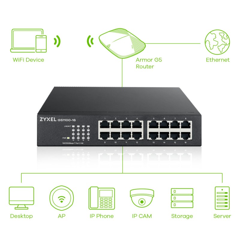 | Θύρες | 16 x 10/100/1000 Mbps |